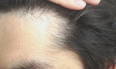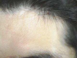 現在発毛してきている短い毛が目立ちますが、一つ悩みもあります。右の写真で眉毛から頭髪までの間に産毛が目立ち、つながってきています。